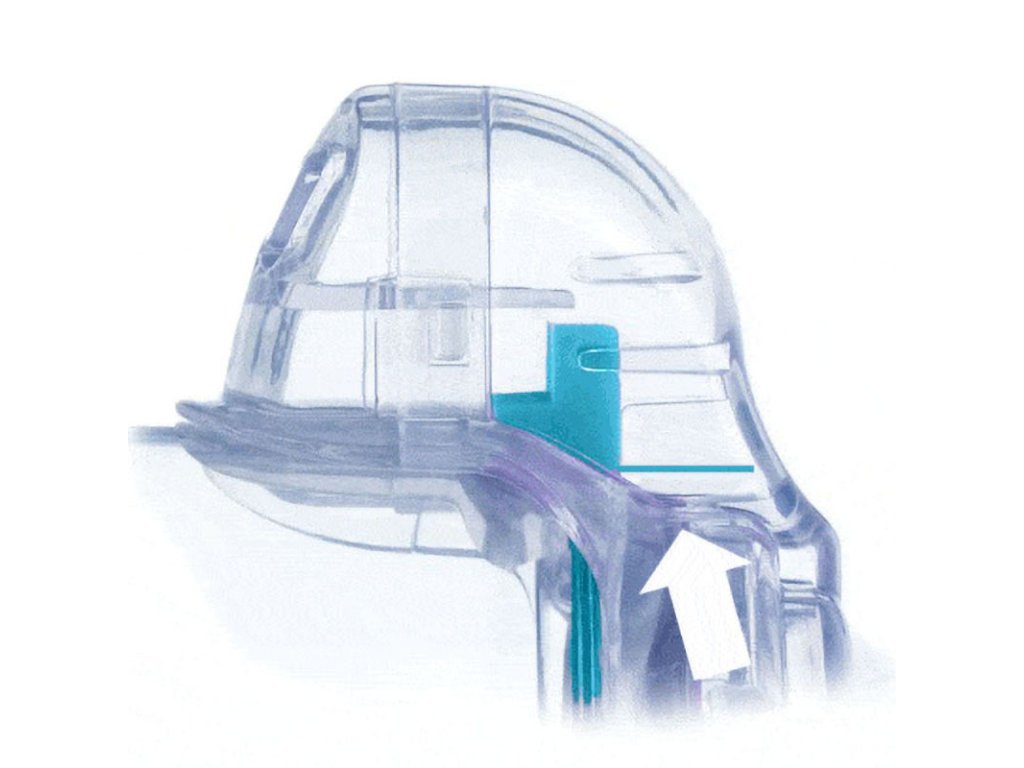 Výdychový ventil: Počas výdychu tento ventil účinne vypúšťa použitý vzduch von a zabraňuje jeho návratu do komory. Tým sa udržiava hygiena a čistota vnútorného prostredia komory pre ďalšie nádychy.