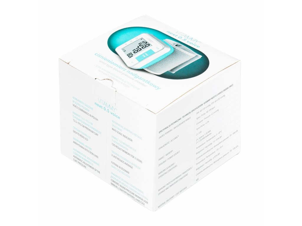 Vitammy Next 0.5 je elektronický zápästný tlakomer, ktorý by ste mali mať vždy pri sebe. Voice Vitammy Next 0.5 má množstvo užitočných funkcií, ktoré uľahčujú presné meranie tlaku v akejkoľvek situácii bez toho, aby ste museli navštíviť ordináciu.