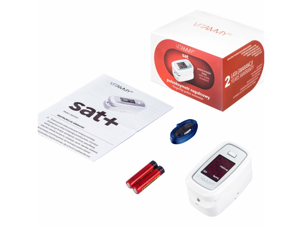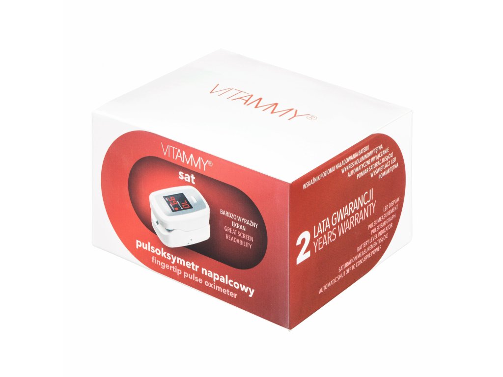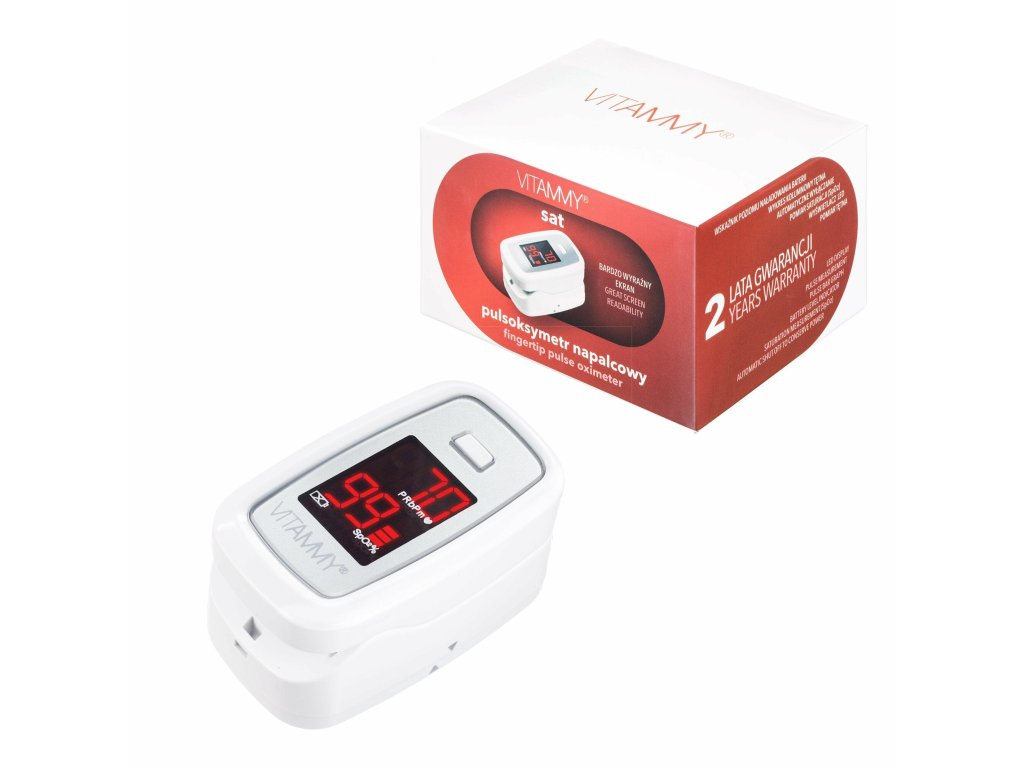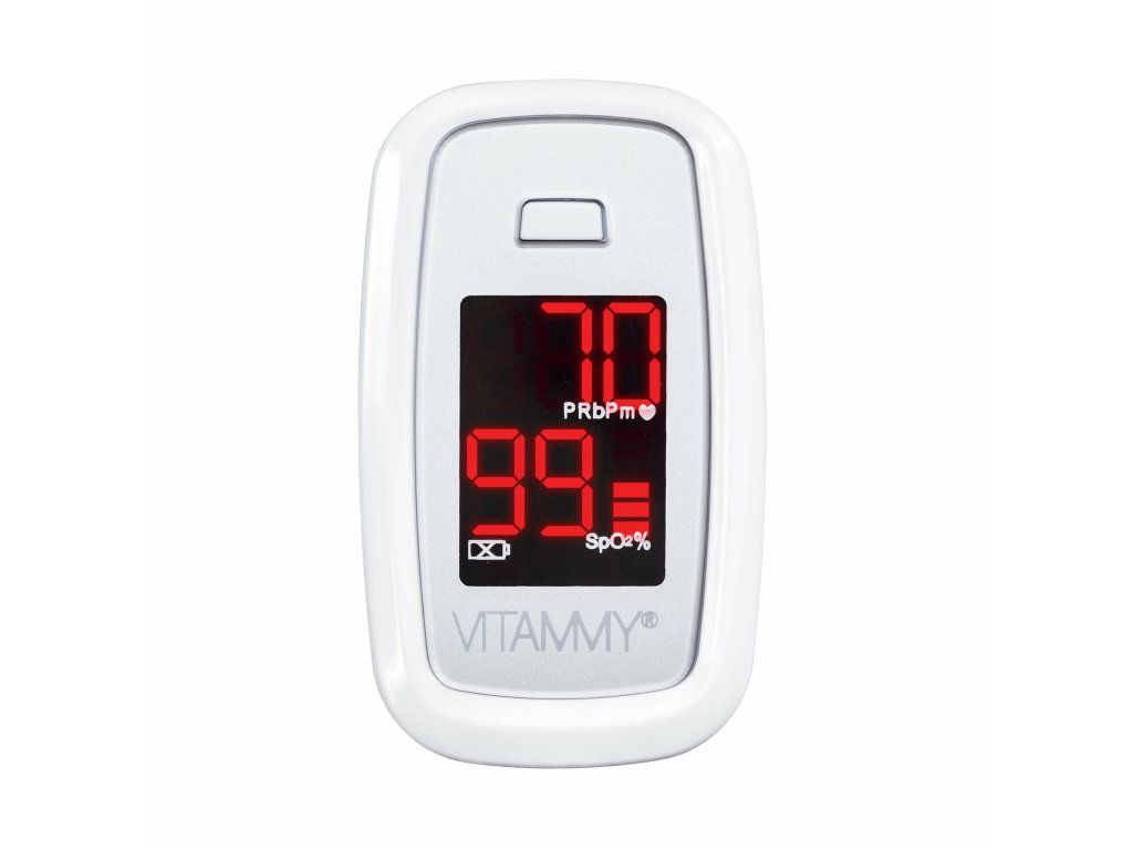 Pulzný oxymeter VITAMMY Sat na prst je certifikovaný medicínsky prístroj, ktorý umožňuje merať srdcovú frekvenciu a úroveň saturácie krvi a kyslíka. Pomáha vám určiť vaše zdravie doma v priebehu niekoľkých sekúnd.