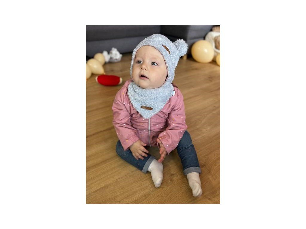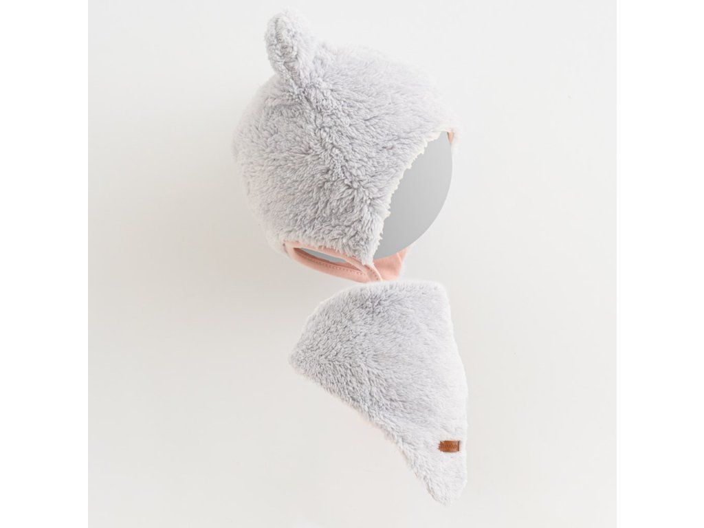 Zimná dojčenská čiapočka so šatkou na krk New Baby Teddy bear šedo ružová, 74 (6-9m) - 49190