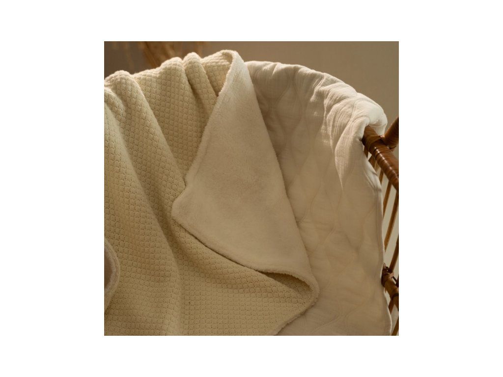 - Obojstranný dizajn - mäkká pletenina so vzorom z organickej bavlny a teplý fleece poskytujú dokonalé pohodlie a variabilitu použitia