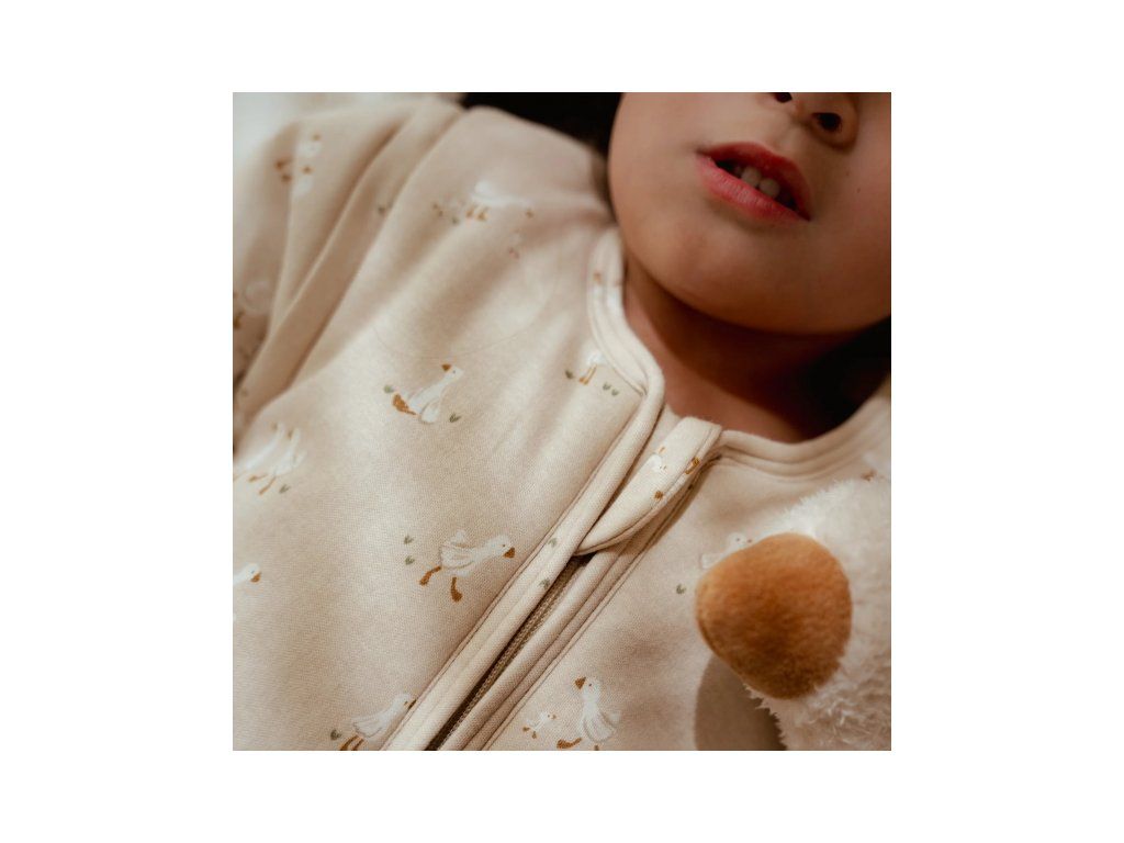 Praktický spací vak s oddeliteľnými rukávmi ponúka variabilitu pri použití podľa počasia a teploty v miestnosti. Vďaka jemnej výplni je vhodný na použitie namiesto perinky. Spací vak zaistí, že sa dieťa v noci neodkope a bude tak po celú dobu spánku v pohodlí a teple bez rizika prechladnutia. Kryté zipsy v prieramkoch umožňujú ľahké oddelenie rukávov, pokiaľ chcete spací vak používať v teplejšom prostredí bez rukávov. Zips na prednej strane umožňuje ľahké vloženie dieťaťa do spacieho vaku a prebaľovanie počas spania.