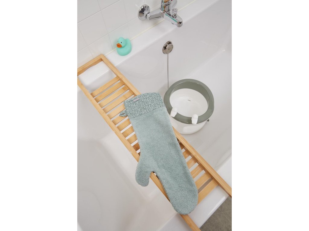 Chcete si užiť pri kúpaní so svojím dieťaťom ešte viac zábavy? Vyskúšajte béžovú froté žinku v tvare veľkej rukavice. Vyrobené z luxusného žakárového froté.