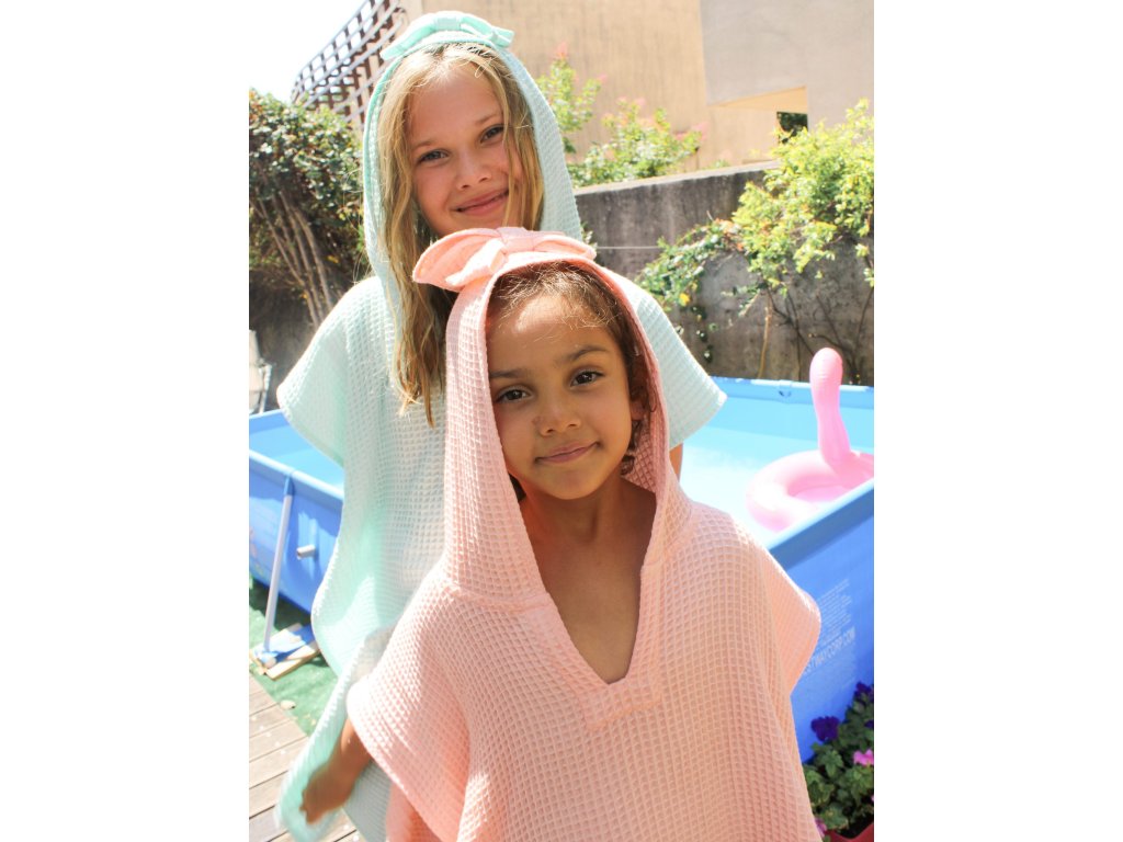 Ak máte radi naše detské osušky, vo výbave vášho dieťatka by nemalo chýbať ani naše pončo, ktoré je rovnako zo 100 % bavlny, ktorá je absolútne šetrná a príjemná pre vaše dieťatko. Pončo využijete všade tam, kde sa dieťatko kúpe – pláž, kúpalisko, záhrada s bazénom, alebo jednoducho po každodennom kúpeli. Vďaka rôznym farbám pončo ľahko zladíte s našim ostatným textilom.
