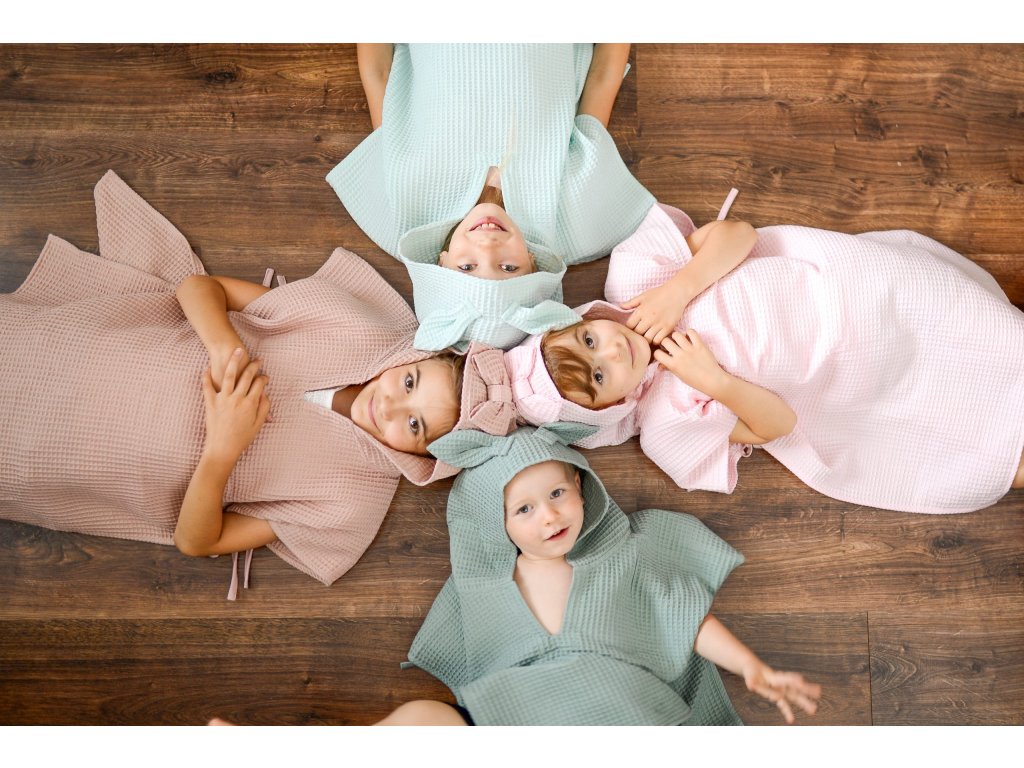 Ak máte radi naše detské osušky, vo výbave vášho dieťatka by nemalo chýbať ani naše pončo, ktoré je rovnako zo 100 % bavlny, ktorá je absolútne šetrná a príjemná pre vaše dieťatko. Pončo využijete všade tam, kde sa dieťatko kúpe – pláž, kúpalisko, záhrada s bazénom, alebo jednoducho po každodennom kúpeli. Vďaka rôznym farbám pončo ľahko zladíte s našim ostatným textilom.