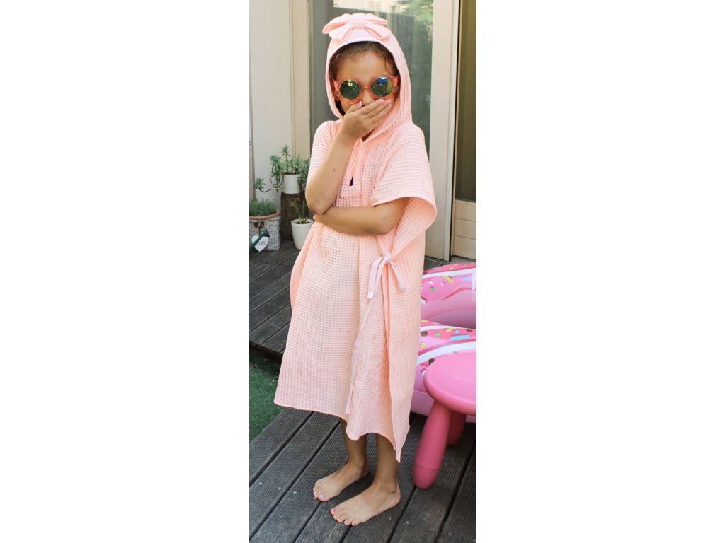 Levin Felin Detské pončo s kapucňou a mašličkou, vafle/tmavostaroružová