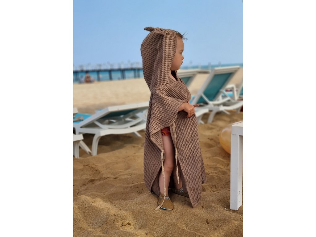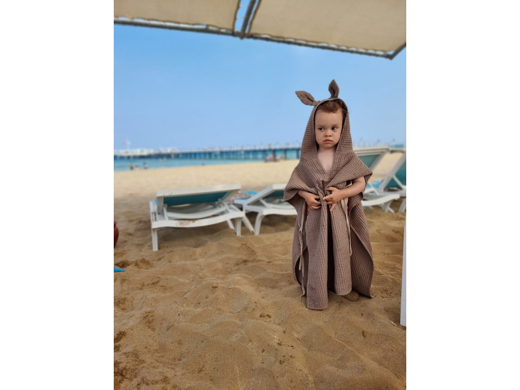 Ak máte radi naše detské osušky, vo výbave vášho dieťatka by nemalo chýbať ani naše pončo, ktoré je rovnako zo 100 % bavlny, ktorá je absolútne šetrná a príjemná pre vaše dieťatko. Pončo využijete všade tam, kde sa dieťatko kúpe – pláž, kúpalisko, záhrada s bazénom, alebo jednoducho po každodennom kúpeli. Vďaka rôznym farbám pončo ľahko zladíte s našim ostatným textilom.