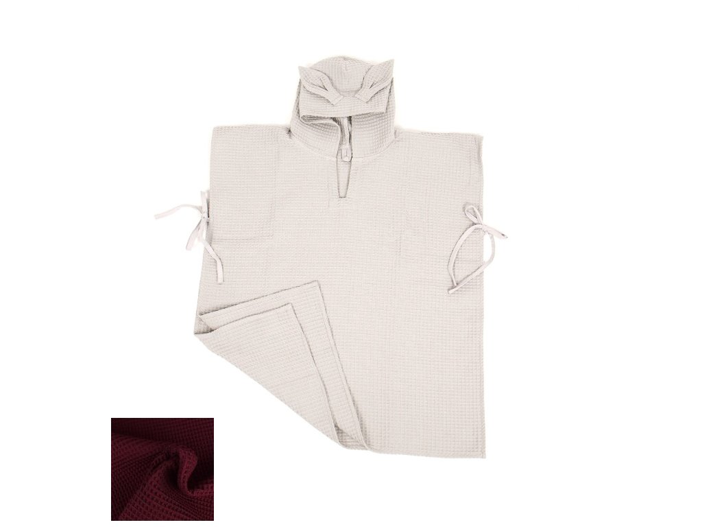 Levin Felin Detské pončo s kapucňou a uškami, vafle/bordová