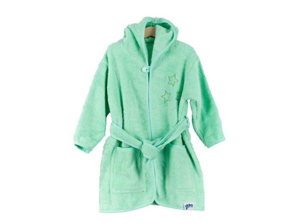 XKKO BIO Bavlnený župan Organic - Grey Stars, 6-12m, mint