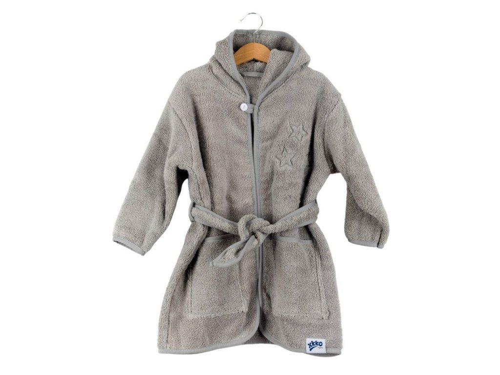 XKKO BIO Bavlnený župan Organic - Grey Stars, 6-12m, šedý