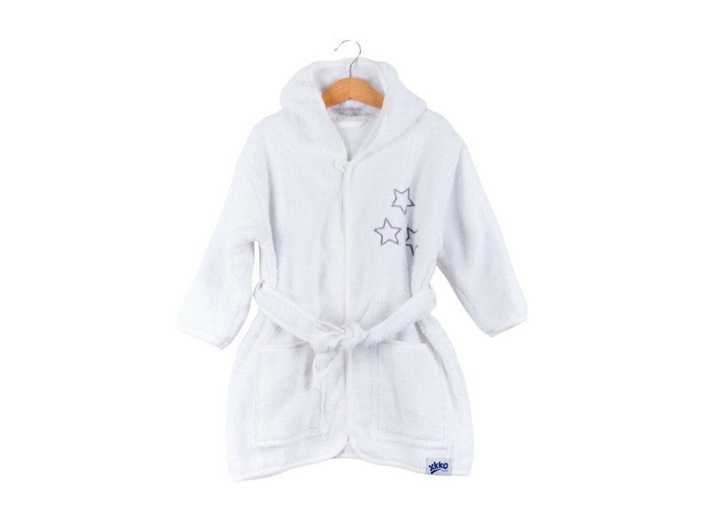 XKKO BIO Bavlnený župan Organic - White Stars, 12-24m, biely