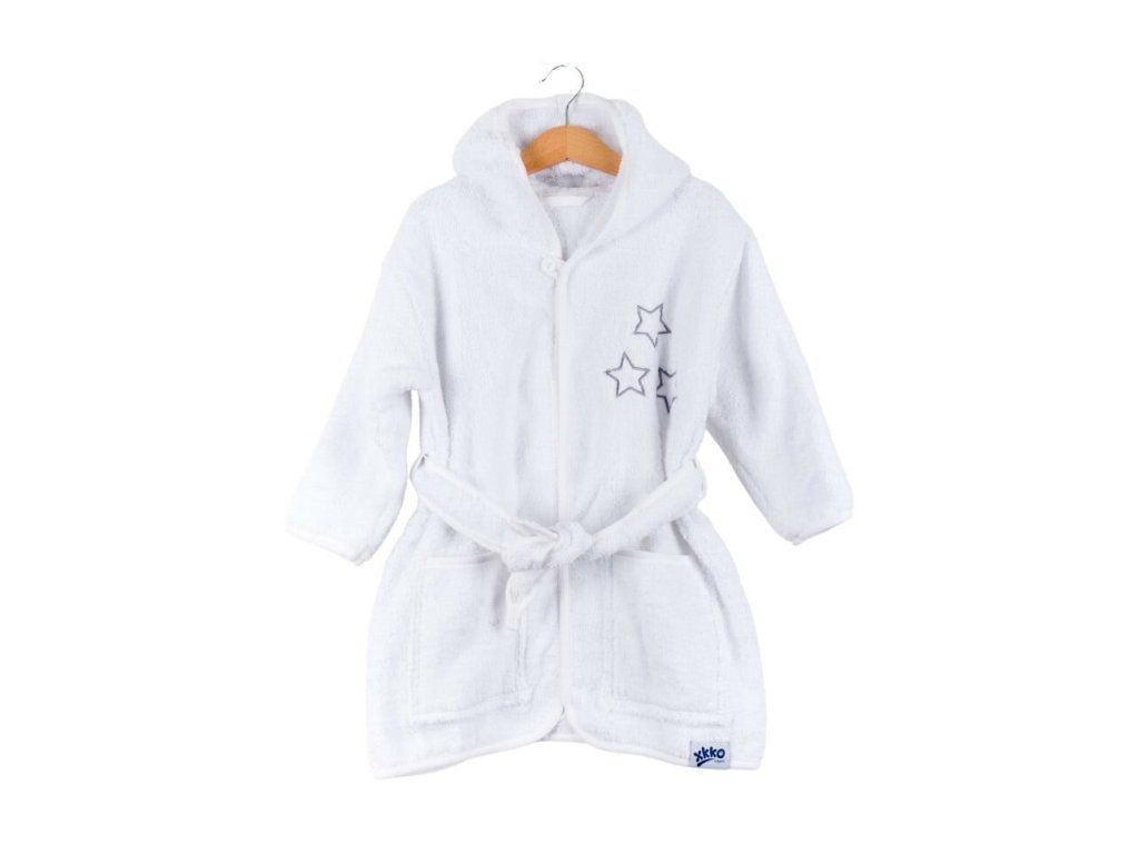XKKO BIO Bavlnený župan Organic - White Stars, 6-12m, biely