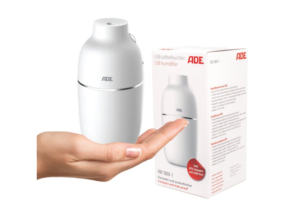 Štíhly zvlhčovač ADE menší ako pollitrová fľaša sa zmestí do kabelky alebo batohu.