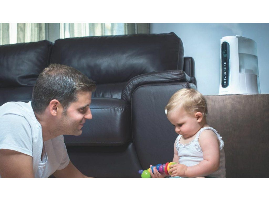 Zvlhčovač-ozonizátor Humitouch Pure čistí vzduch a zabraňuje vzniku baktérií, pričom je schopný eliminovať aj nepríjemné pachy. Okrem toho udržuje optimálnu úroveň vlhkosti v miestnosti, čo je kľúčové pre dýchacie cesty a celkovú pohodu. Ozonizátor pomáha eliminovať mikroorganizmy a baktérie, čím vytvára skutočne čisté ovzdušie.