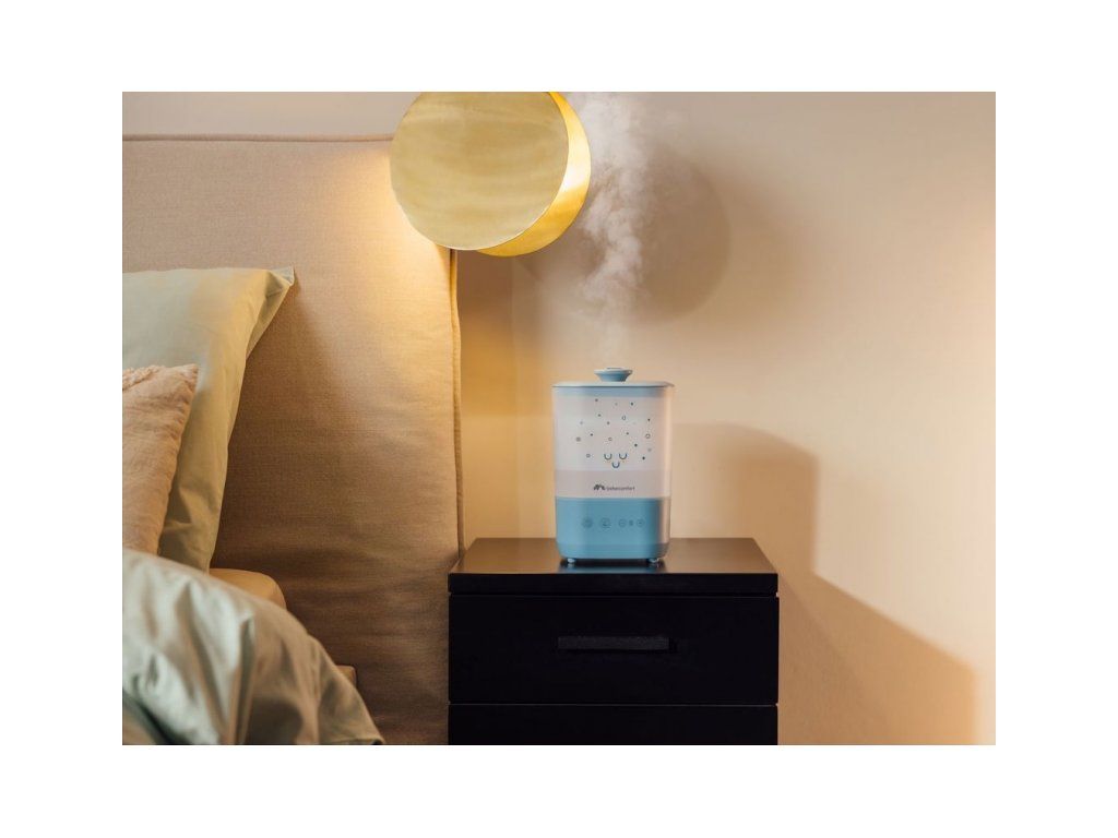 Zvlhčovač Bebeconfort Comforting Cool Mist vytvára ideálne prostredie pre nerušený spánok a zdravé dýchanie bábätiek aj rodičov. Jemná chladná hmla udržuje optimálnu vlhkosť v detskej izbe, zatiaľ čo tichá prevádzka a upokojujúce nočné svetlo dopĺňajú príjemnú atmosféru. Praktické plnenie zhora a jednoduchá údržba z neho robia skvelú voľbu pre každodenné použitie.